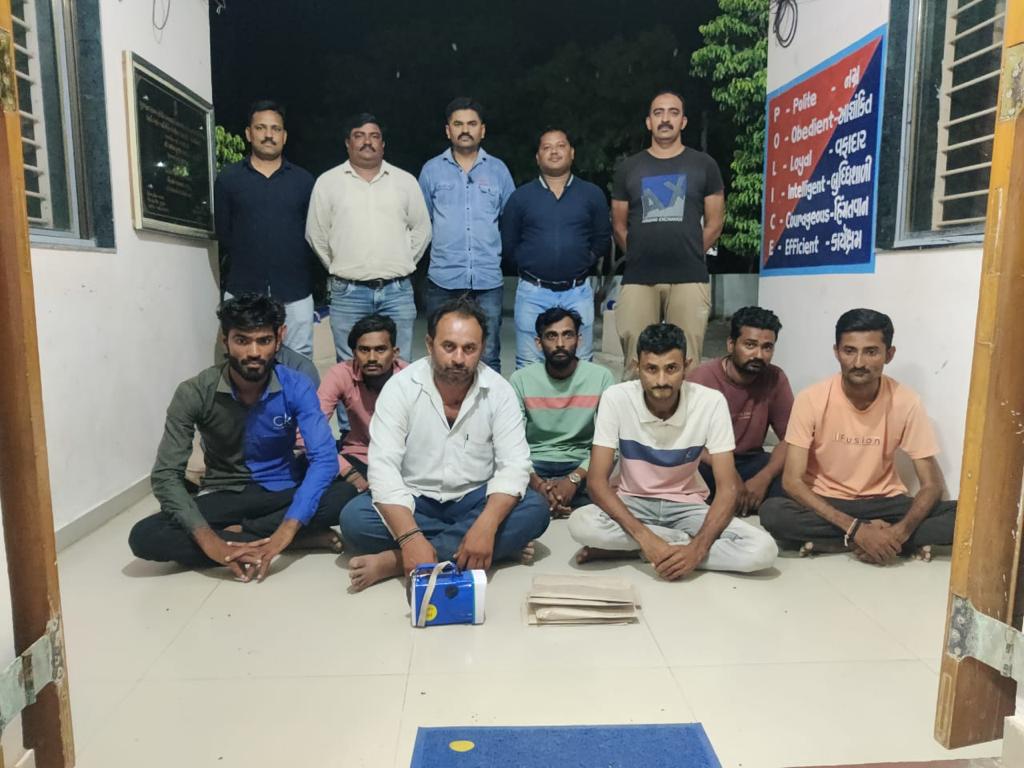 જાહેરમાં હાથબત્તીના અંજવાળે પૈસા પાનાથી હારજીતનો જુગાર રમતા આંઠ ઇસમોને રોકડ રકમ, મોબાઇલ ફોન તથા જુગાર સાહિત્ય સાથે પકડી પાડી, તમામ ઇસમો સામે જુગારધારા મુજબ ધોરણસર કાર્યવાહી કરી,