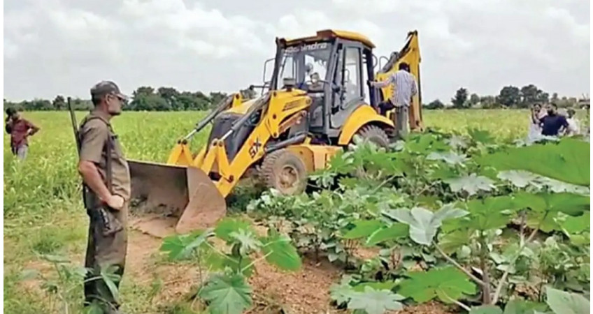 વઢવાણ તાલુકાના નગરા સહિત આસપાસના ગામોમાં ચેકીંગ દરમિયાન ખેડૂતોના ઉભા પાકમાં જેસીબી ચલાવી દઈ લાખોનું નુકસાન થવાથી ખેડૂતોમાં રોષ ફેલાયો