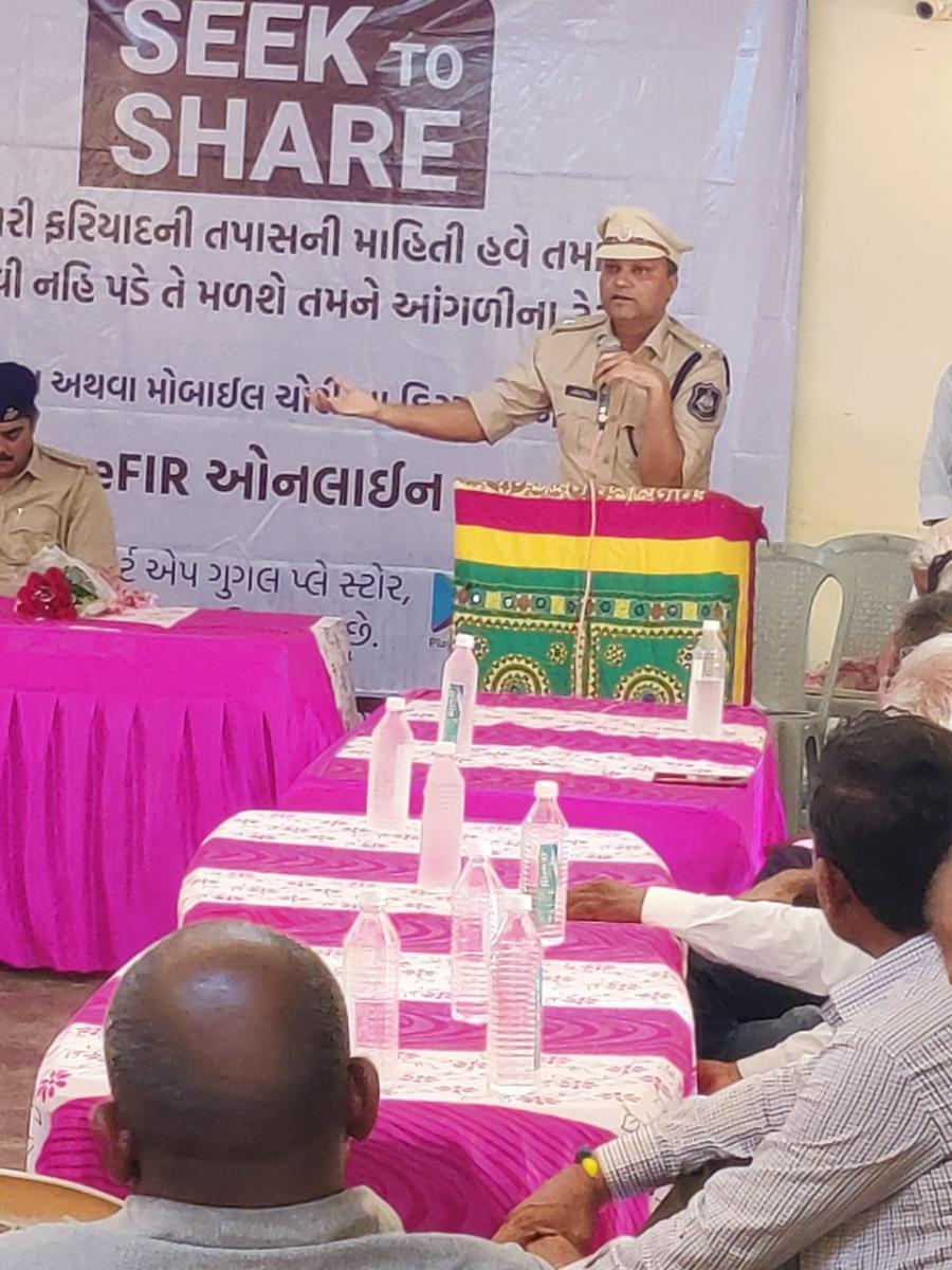 આજરોજ તા.07/08/2022 ના ક.12/00 થી 13/30 દરમ્યાન ખડીર પોલીસ સ્ટેશન દ્વારા રતનપર ગામ શ્રી રામકૃષ્ણ દેવ વિધા સંકુલ ખાતે E-FIR અંગે સેમિનાર યોજવામાં આવેલ જે સેમિનારમાં મ્હે. શ્રી મહેન્દ્ર બગડીયા સર પોલીસ અધિક્ષક શ્રી પુર્વ કચ્છ ગાંધીધામ તેમજ શ્રી કે.જી.ઝાલા સાહેબ ના.પો.અધિ. ભચાઉ વિભાગ તેમજ સી.પી.આઈ શ્રી ડી. એમ. ઝાલા સાહેબ તેમજ ભચાઉ તાલુકા પંચાયતના કારોબારી ચેરમેન શ્રી પાર્વતી બેન હમીરભાઈ આહિર તેમજ રતનપર ગામ ના સરપંચ વેજીબેન દશરથભાઈ આહિર તેમજ ખડીર વિસ્તારના અગ્રણીઓ અને નાગરિકો હાજર રહેલ. જે સેમિનારમાં E-FIR બાબતે તેમજ સાયબર ક્રાઇમ અવરનેશ બાબતે માર્ગદર્શન આપવામાં આવેલ તથા સીટીઝન પોર્ટલ ના ઉપયોગથી વાહન ચોરી તેમજ મોબાઈલ ચોરીના બનાવ અંગે E-FIR કઇ રીતે કરવી તે અંગે વિડિયો મારફતે સમજ કરવામાં આવેલ...